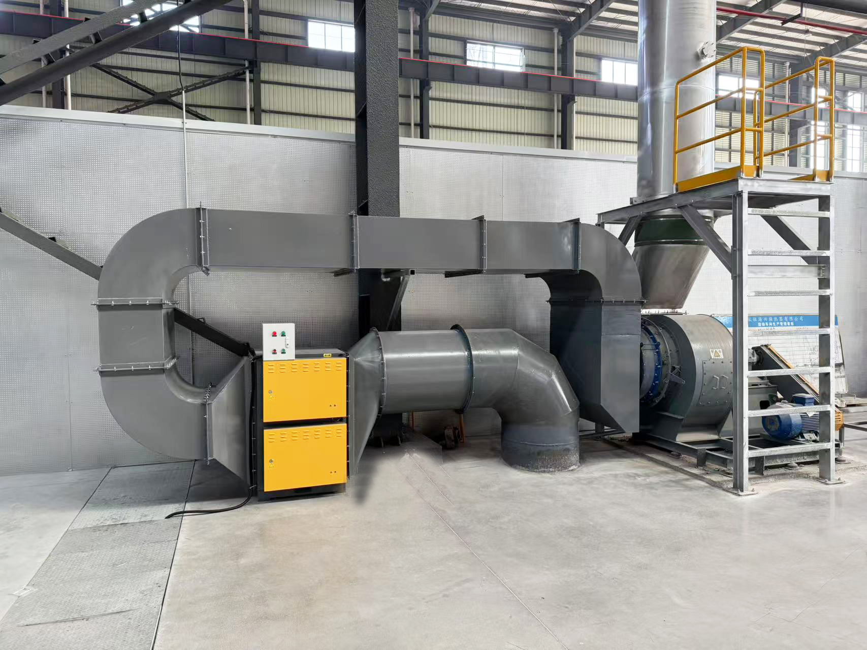 工業生產車間安裝國茂機電風機和油煙凈化設備