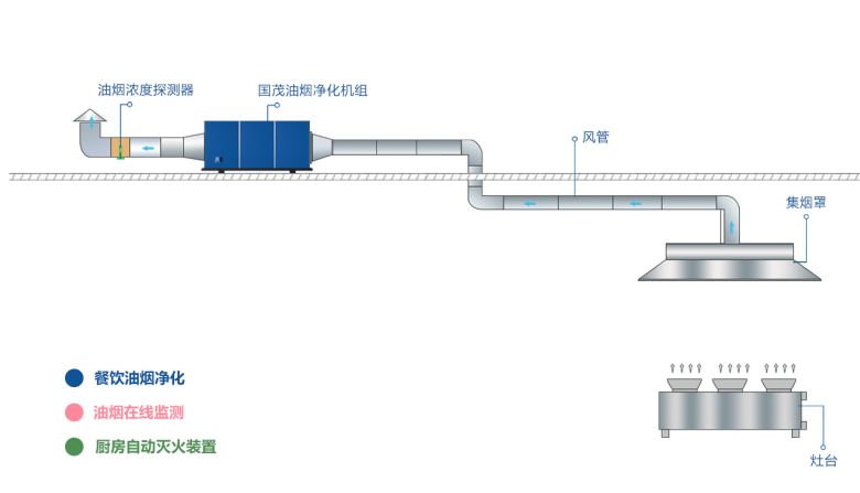 國茂餐飲廚房油煙凈化一體機組室內吊裝現場實拍