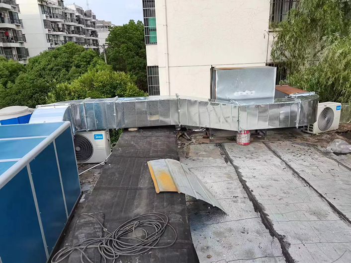 國茂飯店酒樓油煙凈化一體機組屋頂地面安裝現場實拍