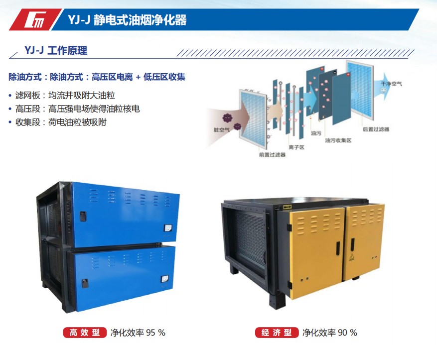 除油方式:高壓區電離 + 低壓區收集